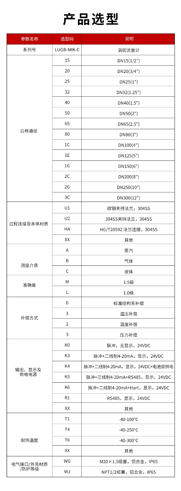 精度等级:1.5级(气体),1.0级(液体)