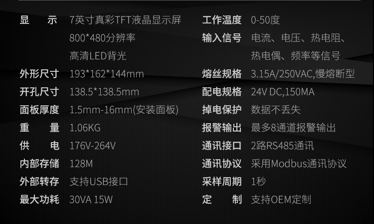 本产品为工业无纸记录仪,配置 3.5 英寸 TFT 真彩全视角液晶显示屏。