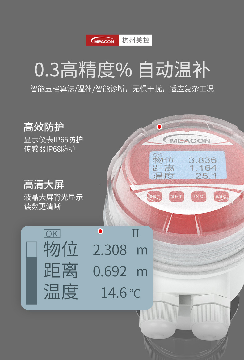 MIK-MP超声波液位计利用发射超声波经物位或液位,反射后所需要的时间来计算距离。